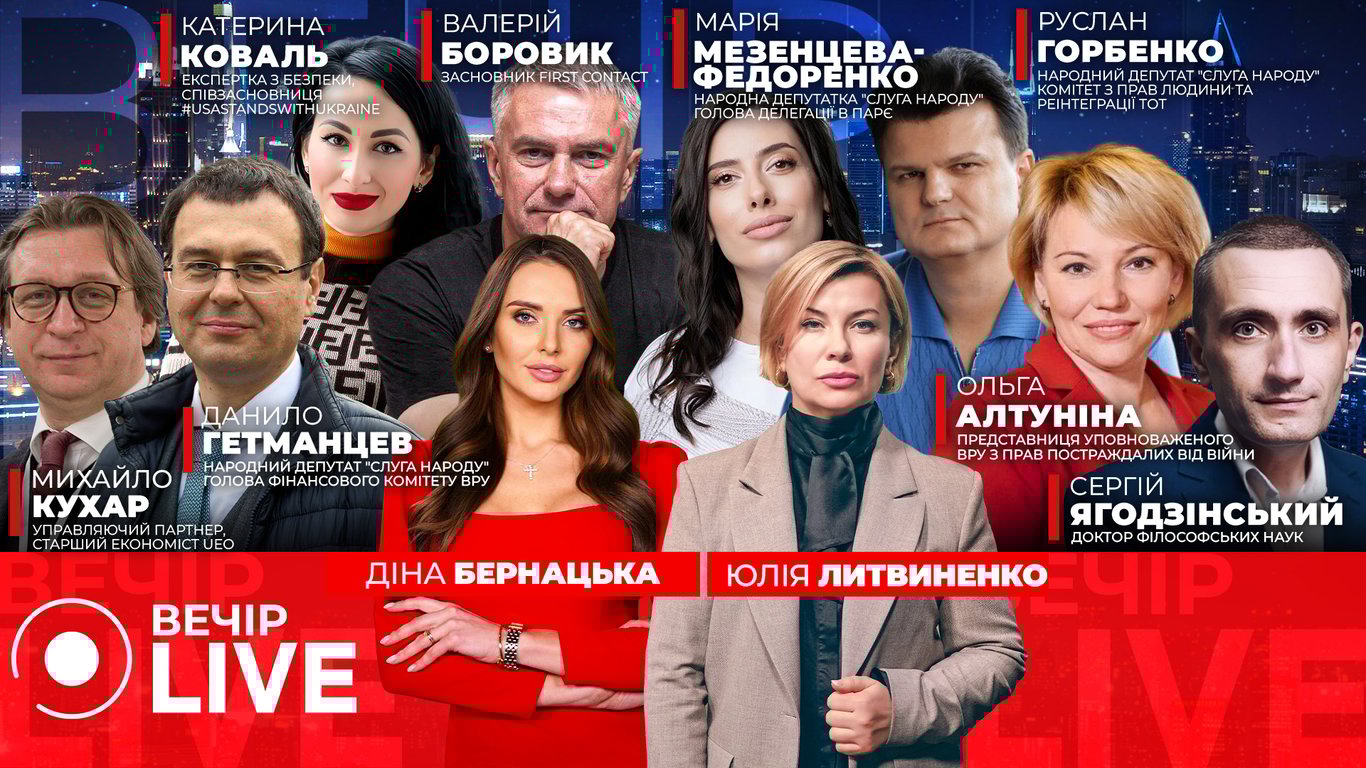 Сьогодні гості ефіру Вечір.LIVE обговорюватимуть наступні теми: